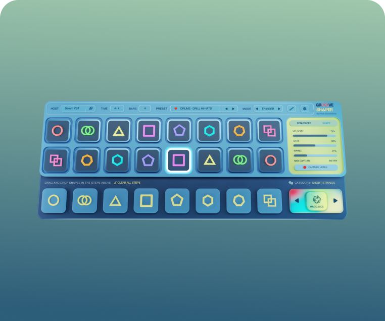 “Great interactive and time efficient tool for making rhythms with percussion. I love Groove Shaper’s magic dice feature!” SOLTAN, DJ & Producer