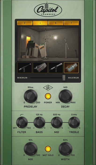 - Create new sounds by repositioning Capitol Chambers' microphones using UA's Dynamic Room Modeling