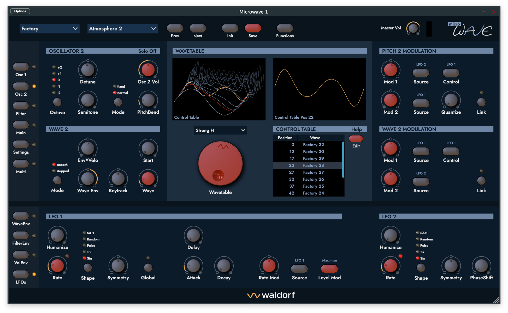 - 2 LFOs with various waveforms, symmetry and humanize parameters.