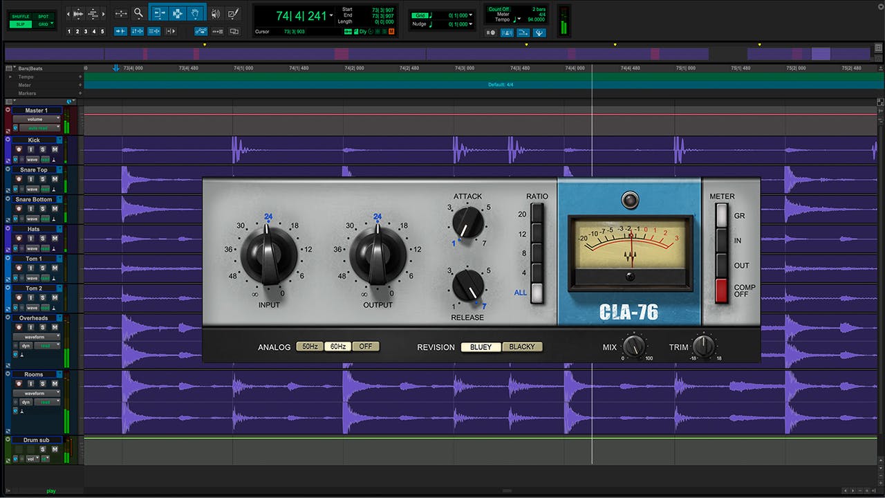 Many compressors aren’t fast enough to handle transients, and generate clicks even with fast attack/release settings. But the CLA-76’s incredibly fast response keeps transients under control—and clicks out of your mix.